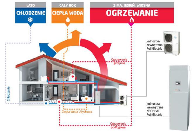 Dzięki zamontowanym w domu nowoczesnym systemom technologicznym tj. powietrzne pompy ciepła zapewniamy sobie możliwość własnej produkcji wody ciepłej, jak również istnieje możliwość zamontowania pompy ciepła do ogrzania całego domu, dzięki czemu oszczędności miesięczne związane z opłatami eksploatacyjnymi są naprawdę wysokie. Pompy ciepła przekształcają energię z naturalnych źródeł ciepła, tj. z ziemi, wody lub powietrza w ogrzewanie domu, chłodzenie wnętrz i ogrzewanie ciepłej wody użytkowej.